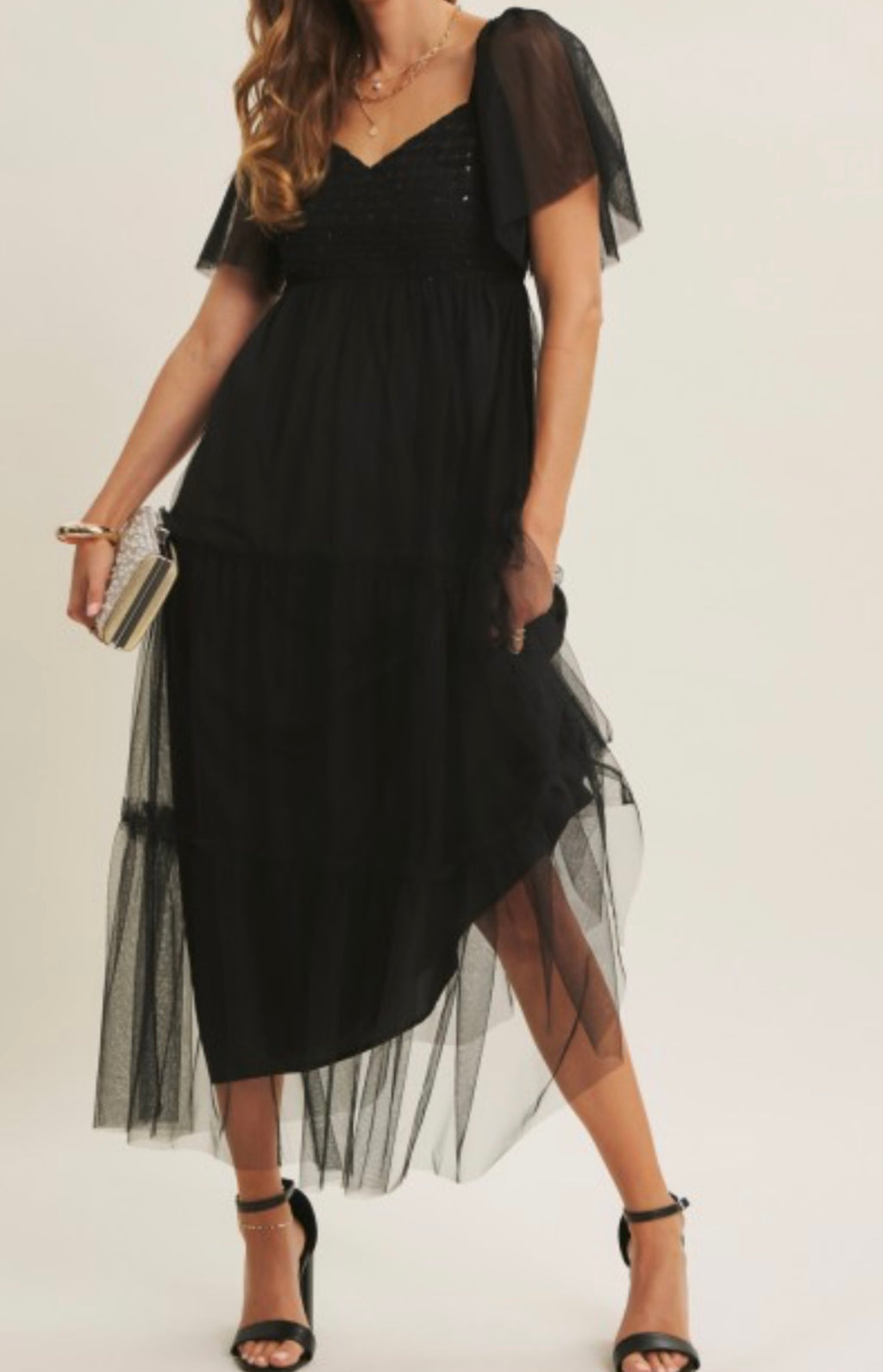 ✨ Enchanted Noir Elegance Dress With Sequined Bodice